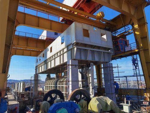 中企承建的這座水電站技改工程溢洪道雙扉門吊裝成功!